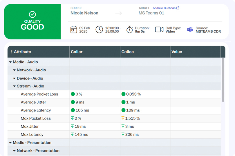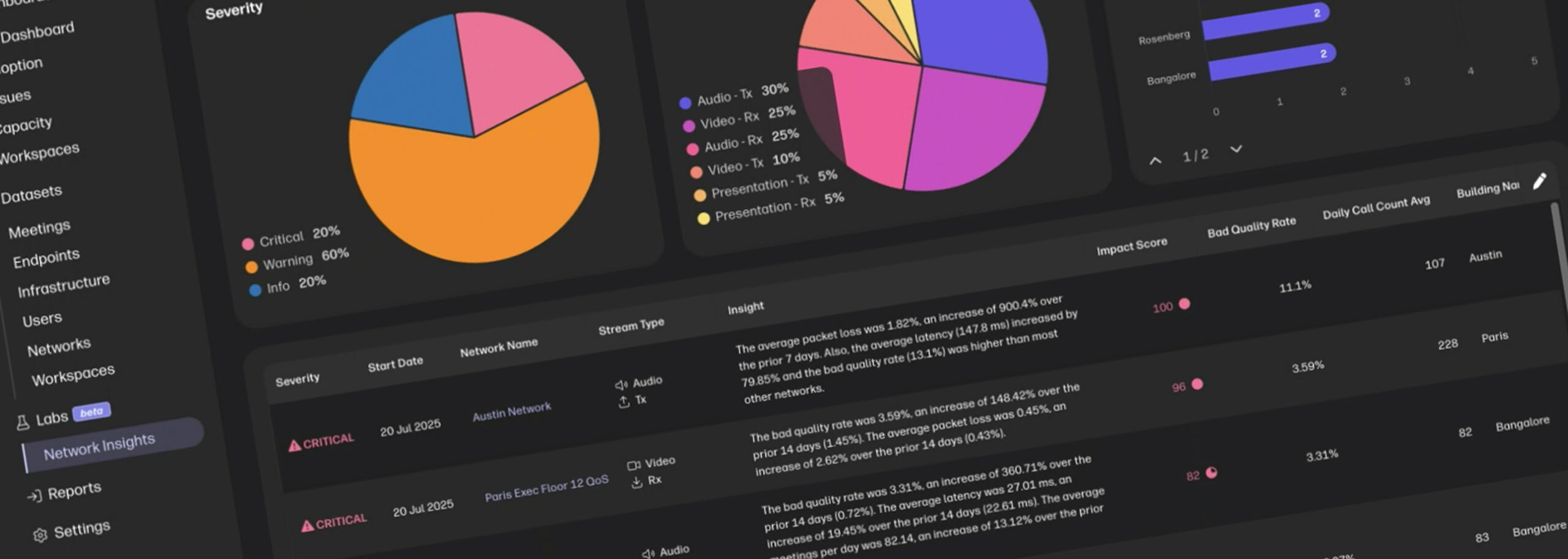 An easy-to-use and powerful system for on-prem environments providing a single-pane-of-glass view for multiple UC vendors. Near real-time monitoring and alerts quickly identify and resolve issues coupled with historical data to diagnose past call quality problems. Detailed analytics to identify adoption and growth opportunities and insights.