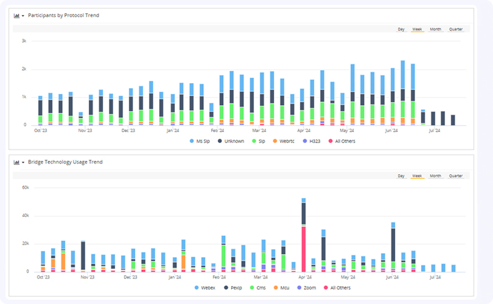 Get ahead of performance risks to improve uptime and user experience with historical trending and deep analytics broken out by days, weeks, months, quarters, years. Accurately identify disconnect causes and explore improvement areas for call success and quality.