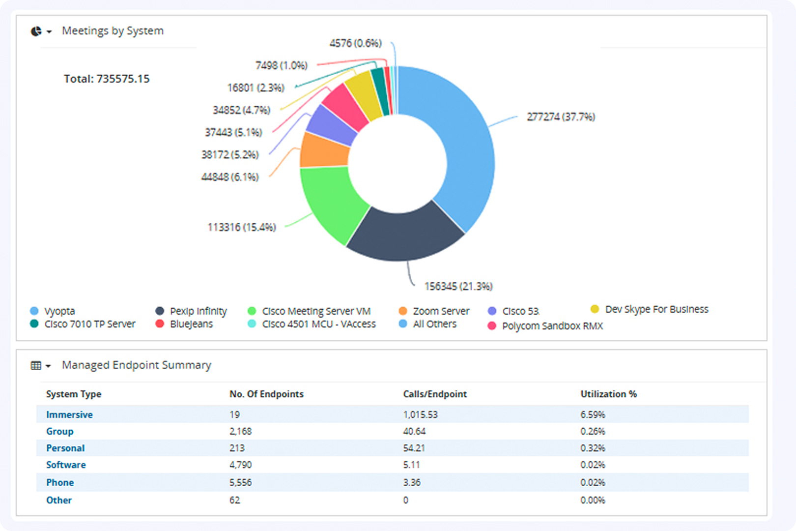 WXP Collaboration simplifies the management of multi-vendor UC environments by providing holistic visibility across video and voice-based collaboration experiences as well as meeting room usage.