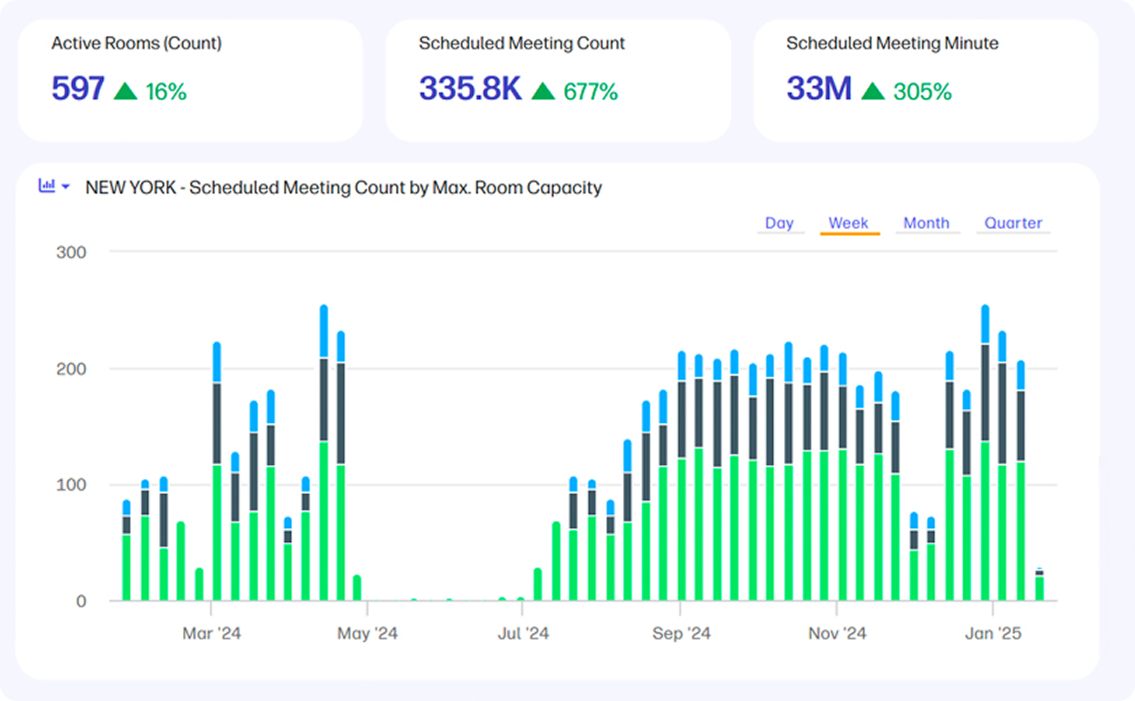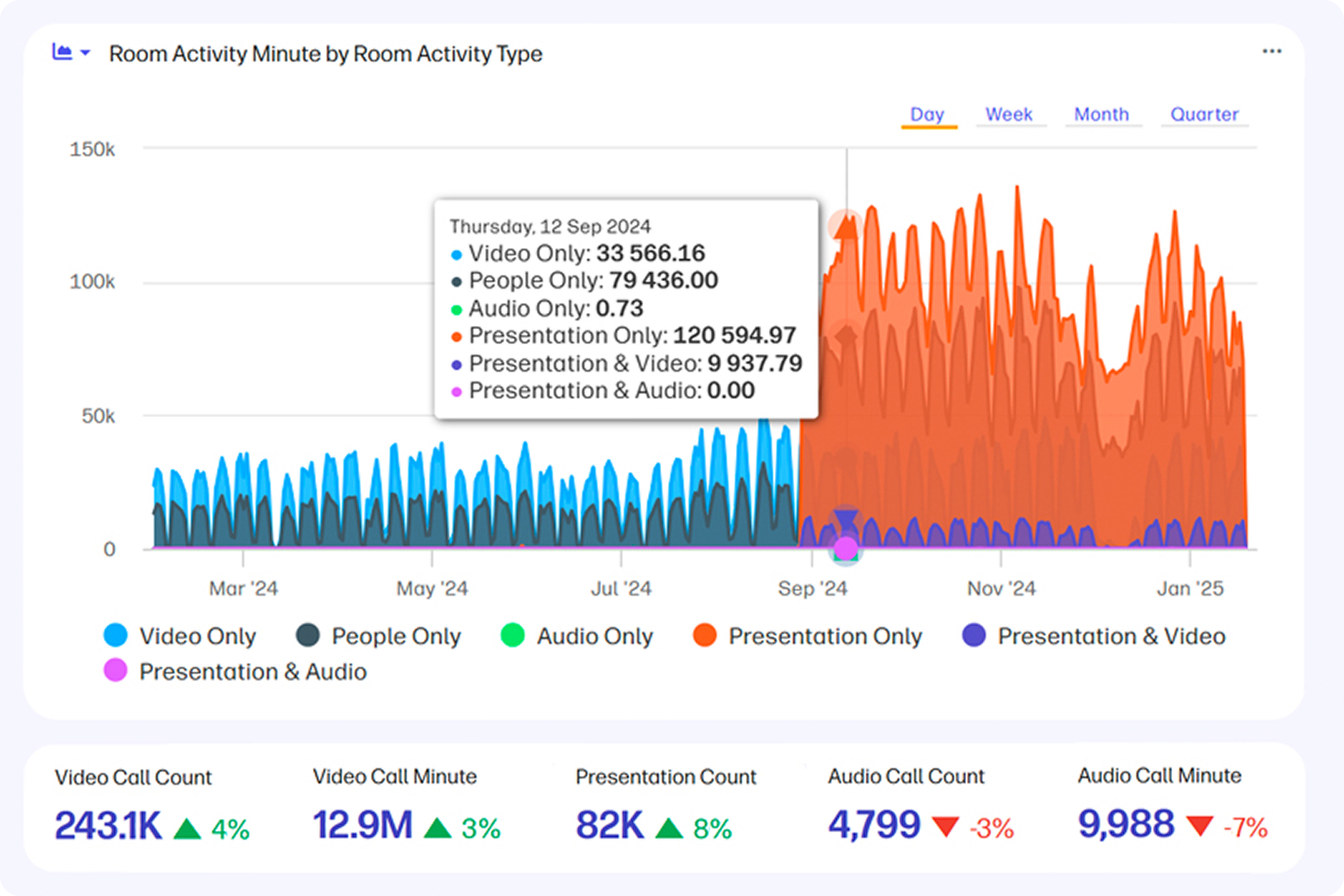 Understand how your technology investment is being used and where it could be optimized. Do employees have sufficient space to host their hybrid meetings? Are Webex rooms frequently dialing into Teams meetings (and vice versa).