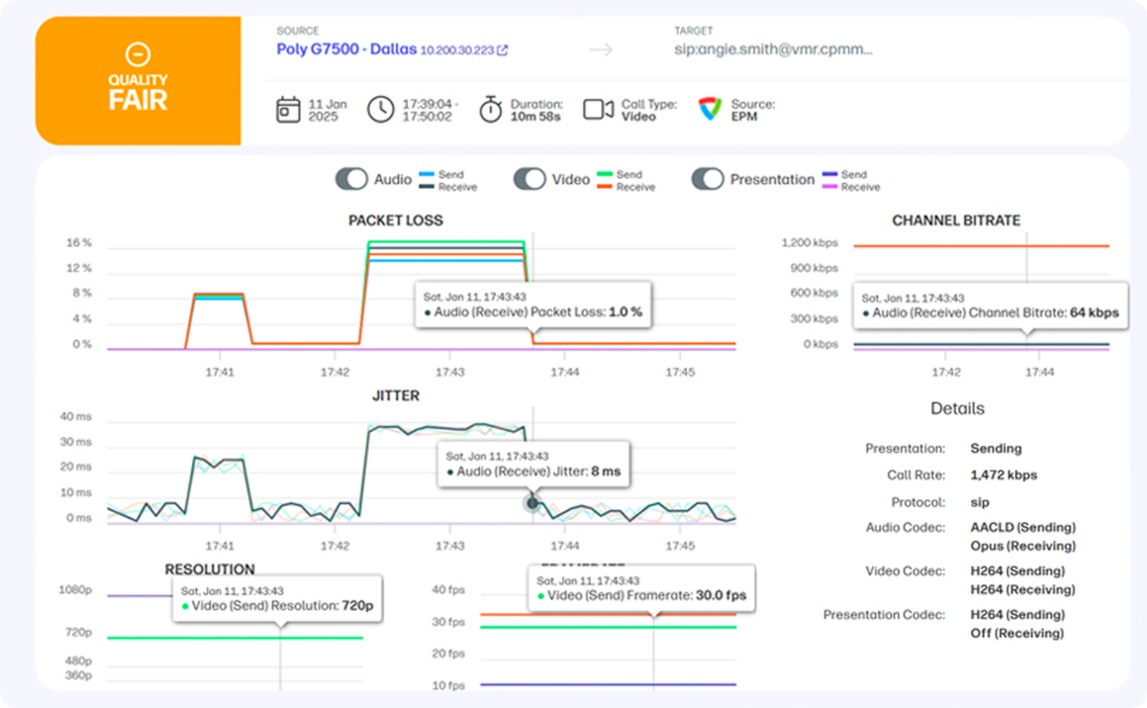 - Detect problematic calls quickly to troubleshoot quality issues, failures, and user error